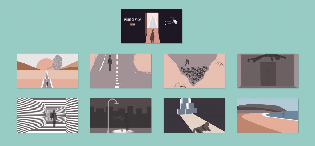 בחירה בשפה גרפית איורית – מינימליסטית וצבעוניות שמדגישה תחושת קור וריחוק.